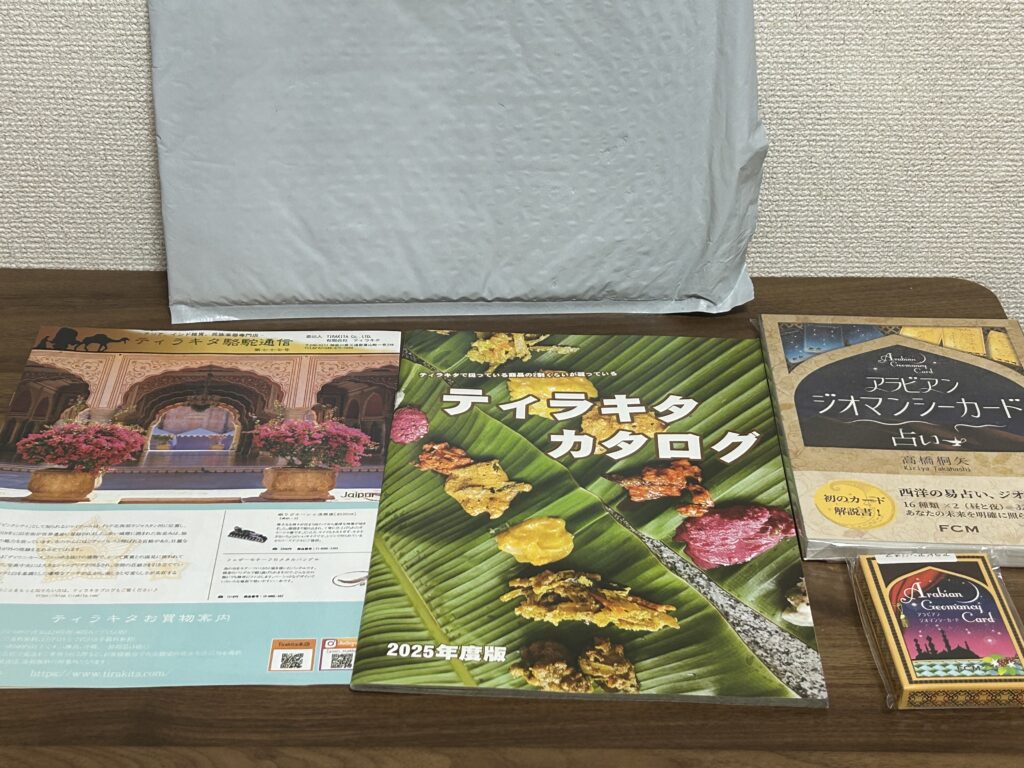 カード一式と解説書のセット…と思っていましたが、梱包を開けたらショップのカタログとチラシ?が同封されていました。